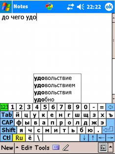 LengOptima – это бесплатная облегченная система локализации от Paragon Software. В принципе, все то же самое, что Pocket Russkey 2003 Lite, за двумя маленькими, но страшно удаленькими исключениями: LengOptima добавляет поддержку русских букв в Letter Recognizer (аналог пальмового Graffiti), а также подсказывает слова при вводе текста: