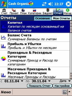 Всё даже на экран не поместились! Помимо отчетов на скриншоте (капитал, баланс счета, прибыль и убытки, приходные и расходные категории – суммарные и месячные) еще есть отчет по проектам, проекты по месяцам, отчет по проводкам, бюджет по месяцем). Добавьте сюда совершенно безотказную и быструю (в понятиях Windows Mobile, разумеется) работу программы и блестящий доходчивый учебник (по-русски разумеется!), и вы получите программу, которая в прямом смысле слова свела меня с ума. Ким Тхе Сик (в общении, Эдуард), пять баллов!