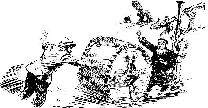 А между тем с горы уже бежали лаборантки, несли с собой двухметровые свистки, флейты, похожие на бревна, витиевато загнутые трубы с огромными раструбами; впереди всех забывший про позументы Архипыч бежал вдогонку за катящимся под гору необычайным барабаном.
