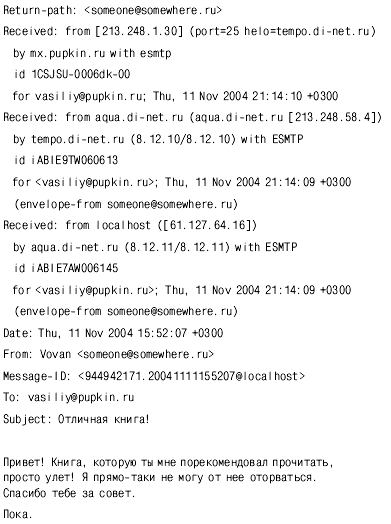 Здесь «тело» письма занимает всего лишь четыре последние строки. Все остальное – это заголовок. Рассмотрим его подробнее.