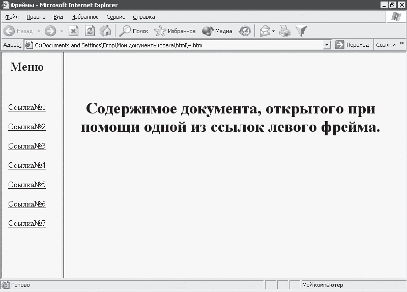 Нам же необходимо, чтобы при щелчках на пунктах меню левого фрейма документы открывались в правом. Сделать это очень просто.