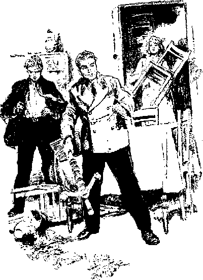 Шелемеха посмотрел на меня и нахмурился. Мгновенно он сунул мне в руку стеклянную вазу с цветами, а сам схватил высокий столик-подставку и, держа его, как дубину, порывистым движением второй руки открыл дверь в темную комнату. Не останавливаясь, он ринулся туда. Я бросился вслед за летчиком, но с разбега наскочил на стул и грохнулся на пол. Падая, я выпустил из рук вазу, и она разлетелась вдребезги.