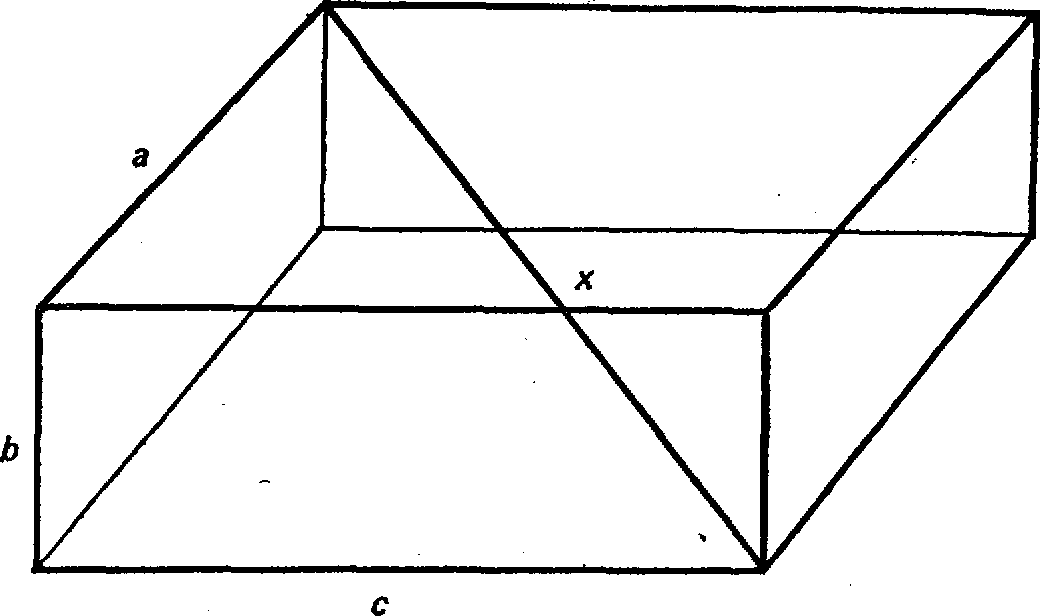 Рис. 26. Длину диагонали прямоугольного параллелепипеда можно выразить через длины его ребер а, Ь и с, просто обобщив теорему Пифагора. Нетрудно перенести это обобщение и на случай четырех или большего числа измерений пространства.
