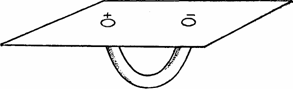 Рис. 28. Уилер предположил, что электрическая заряженная частица могла бы представлять собой торец крохотной трубки – «кротовой норы», проходящей через другое измерение пространства и соединяющейся с привычным нам трехмерным пространством в том месте, где во Вселенной находится частица с противоположным зарядом.