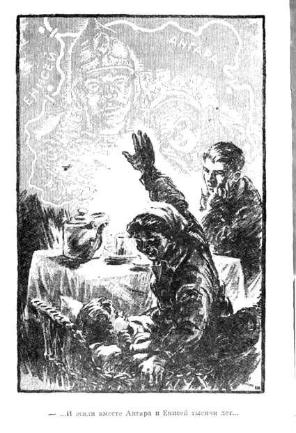 На их берега сходились народы. Люди бросали в воду камни. Ангара пенилась, кипела, уносила камни прочь, как легкие пушинки. Люди бросали. Ангара была сильная — они сильнее, Ангара была смелая — они смелее, Ангара была непокорная — они непокорнее.