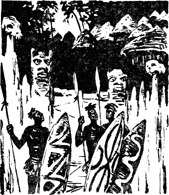 В руках воины сжимали большие копья с огромными наконечниками, похожими на узкие мечи. Воины опирались на большие щиты, разрисованные черно-белым орнаментом. Дубины из черного дерева, очень твердого и тяжелого, висели на поясах из шкуры жирафов.