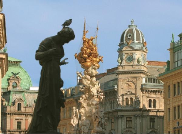 Магазины и кофейни улицы Грабен, конечно, достойны вашего внимания, но не забывайте поглядывать вверх: богатство архитектуры эпохи барокко, поверьте, не менее привлекательно.