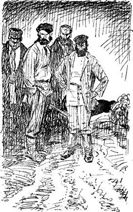 Уже гораздо больше половины пути проехали они. И вдруг, завернув за один из поворотов лесной дороги, увидали прямо перед собой сидящих на обочине пятерых мужиков. Завидев повозку, они встали и вышли на дорогу. Матвейко остановил лошадь. Мужики все были с бородами, одетые по-крестьянски. Кто-то из них сразу взял лошадь за уздечку, а один мужичок, невысокий и Щупловатый, с хитрыми глазами (на нем, единственном из всех, были сапоги), спросил: