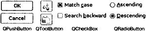 Рис. 2.16. Виджеты кнопок Qt.