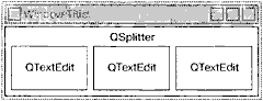 Этот пример состоит из трех полей редактирования QTextEdit, расположенных горизонтально в виджете QSplitter. В отличие от менеджеров компоновки, которые просто размещают в форме дочерние виджеты, а сами не имеют визуального представления, QSplitter наследует QWidget и может использоваться как любой другой виджет.