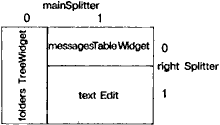 Можно обеспечить сложную компоновку путем применения вложенных горизонтальных и вертикальных разделителей QSplitter. Например, показанное на рис. 6.9 приложение Mail Client (почтовый клиент) состоит из горизонтального QSplitter, который содержит справа от себя вертикальный QSplitter.