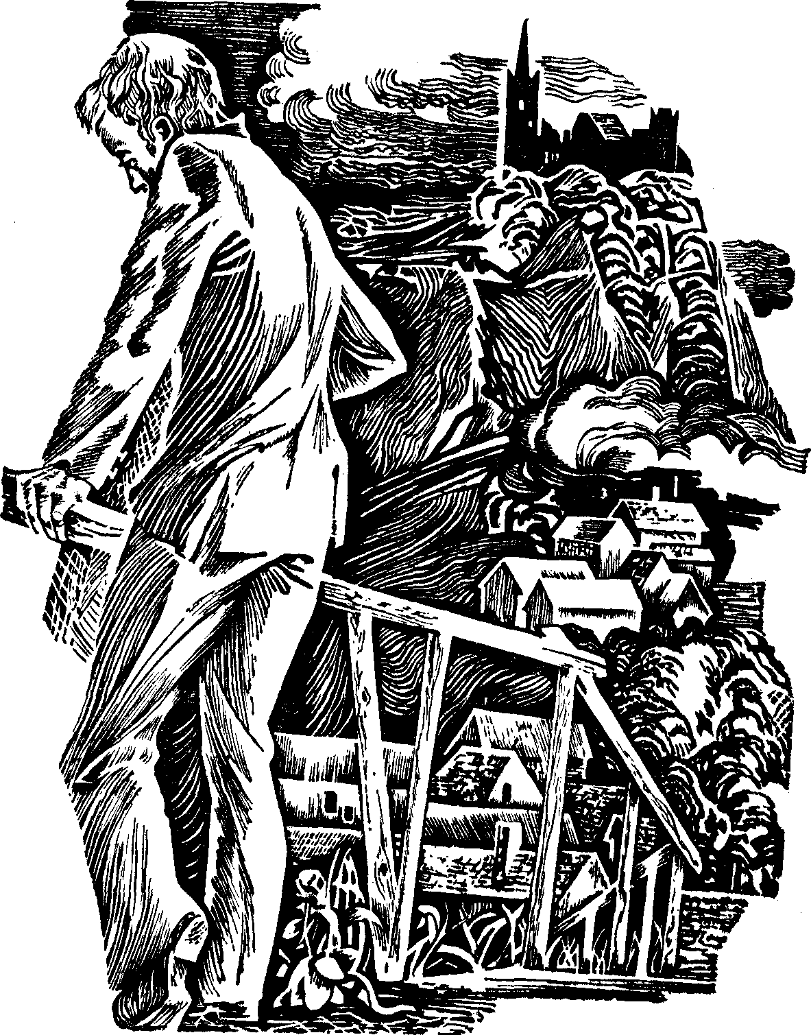 Тропинка вела вверх. Ступенек было много, еще не остывшие деревянные перила покачивались от малейшего прикосновения и жалобно скрипели. Через овраг перекинут горбатый мостик. Потом опять ступеньки. За ними глухая аллея, похожая на темную трубу. Постепенно глаза привыкли к темноте, он стал различать ниши, углубления со скамейками, каменными жерновами вместо столов. На площади, куда вывела аллея, было непривычно светло. И вид оттуда открывался широкий. Загустевшая темень лежала внизу, а вверху над головой раскинулось прозрачное, ясное небо.