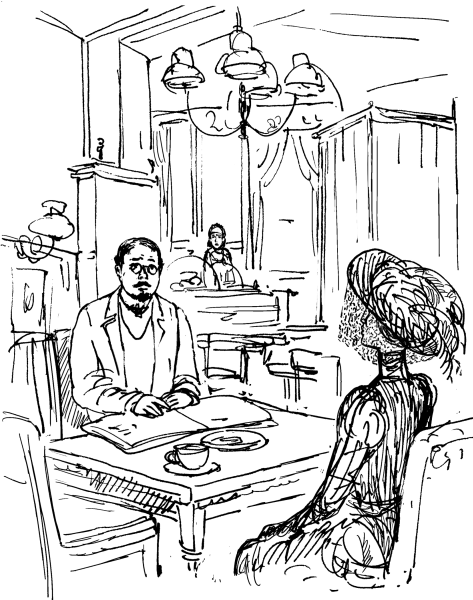 Впрочем, полноватого господина, кажется, созданного для утех кулинарии, ароматы не радовали. Сидя у дальнего окна, он тревожно озирался, нервно тер очки и внимательно оглядывал каждого входящего. Кофе давно остыл, свежий номер «Нового времени» лежал нераскрытым.