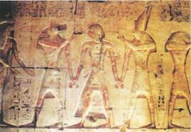 Помазание фараона Сети I, изображение на стене святилища его храма в Абидосе.