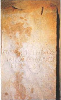 Одна из надписей, найденных в Велии в 1958 г., гласит: «Оулис (жрец Аполлона), сын Аристона, Ятрос (врачеватель), Фолархос (хозяин убежища, мастер инкубации), в 280 году».