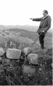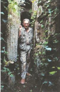 Автор и профессор Роберт Темпл над траншеей, ведущей к входу в подземный комплекс.