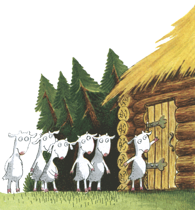 У трех бабушек было по одному серенькому козлику. Бабушки козликов очень любили. Пошли козлики в лес погулять, а там их волки съели. Остались от козликов рожки да ножки.