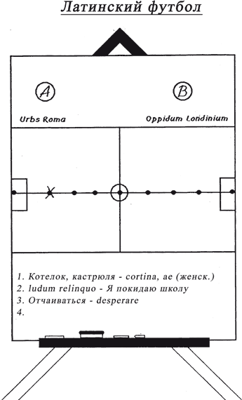 ДОМИНИК. Бартон-Миллс, Элвин-Джонс, Спрэгг, Уитвелл, Сметвик, Катчпол и Поттер составляют команду А: Urbs Roma. [238] Картрайт, Фиггис, Стэндфаст, Харви-Уильямс, Хьюз, Мэдисон и Киннок – команду Б: Oppidum Londinium. [239] Правила вы уже знаете. Верный ответ позволяет сохранить мяч у себя и продвигает его к воротам противника, неверный отдает мяч другой команде… Итак, Urbs Roma и Бартон-Миллс начинает с центра поля. (По мере развития игры говорит все быстрее.) Хорошо, Бартон-Миллс, будьте добры, скажите мне, как будет на латыни «котелок». «Котелок» или «кастрюля». Должен вас поторопить… нет? Мяч переходит к Oppidum Londinium и Картрайту. «Котелок» или «кастрюля», Картрайт? Ответ верен! Великолепная блокировка противника, Картрайт, просто великолепная. Cortina, cortinae, женский род, котелок или кастрюля, вам следовало бы помнить это, Бартон-Миллс, учебник для первого класса. Итак, мячом по-прежнему владеет Картрайт, и сейчас он переведет нам на английский relinquo ludum или ludum relinquo. Да? «Я покидаю школу» – ответ верен! Картрайт, все еще владея мячом, отважно продвигается к воротам противника. А теперь скажите, как будет на латыни «отчаяние». «Отчаиваться»? Нет? Отчаяние вам не ведомо? Мяч переходит к Urbs Roma и Уитвеллу. «Отчаиваться», Уитвелл? Нет? Ну, олух царя небесного. Мяч возвращается в Лондон и попадает к Фиггису. «Отчаиваться», Фиггис, это?.. Desperare, умница. Фиггис, владея мячом, выходит к воротам – всем успокоиться! (Сам он почти уже не владеет собой.) Итак, Фиггис, как будет на латыни – и, чтобы попасть в ворота, ответ должен быть абсолютно точным, – как будет на латыни…