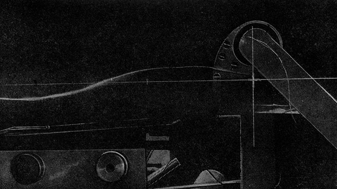 Результат вызывает восхищение. Вообразите, оператор нажимает серию кнопок либо накладывает на пульт заготовленный шаблон, чтобы задействовать определенную комбинацию кнопок, оставив остальные нетронутыми,- и медленно движущиеся в водоеме волны с интервалом несколько секунд воспроизводят волнение при разгоне 160 км и скорости ветра 30 узлов. В обычном бассейне волны, достигнув противоположной стенки, отражаются от нее (так было бы и со звуковыми волнами). В реальных условиях волны оканчивают свою жизнь, обрушиваясь на берег, и отдают ему энергию. Очевидно, в мо дели следовало воспроизвести естественный берег; его сделали из густого частокола двухметровых стальных столбов, вроде той щетки, которой моют тарелки. Приходящие волны теряются в этом стальном лесу, оставляя свою энергию. Здесь стоит гул от волновой бомбардировки и потому линия уток в масштабе 1/150 производит поразительное действие: отделяет «штормовую» зону от неподвижной полоски воды — эффект, который Солтер демонстрировал ранее в небольшом лотке.