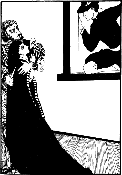 И вдруг раздался звон — вдребезги разлетелось оконное стекло, разбитое сильным ударом, и в комнате появился молодой человек с баскским кинжалом на поясе. Он спросил тоном человека, привыкшего повелевать: