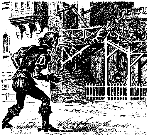 Когда Стюарт смог идти, лучника по его просьбе подвели к королю. Арену заняли два акробата и козел. С высоты королевского места можно было видеть то, что происходило на подъемном мосту: солнце освещало головы восхищенных зрителей, скопившихся вокруг героя дня, волосы которого сверкали золотом.