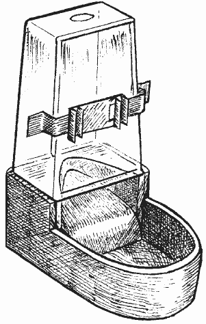 Поилки бывают обычные и автоматические. Обычные применяют для каждодневного использования, автоматические очень удобны, когда хозяину приходится надолго отлучаться. В автоматическую поилку наливают воду на 2–3 дня. Вакуумные автопоилки, изготовленные из пластмассы или стекла, крепятся к прутьям клетки, не очень далеко от жердочки, но и не перед ней.