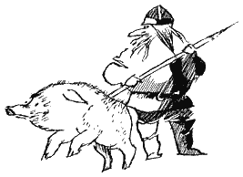 — Вы растяпы, а не сторожа свиньи! — вспылил король карликов. — Воины Красивого Народа нашли её у берегов Аврен. Она бежала через ущелье. Вы же ничего не знаете! За ней охотилось полдюжины воинов Рогатого Короля. А за ними стояло целое войско и наблюдало. Только мы можем обхитрить и провести вас, неуклюжих скороходов! Мои воины спасли свинью и привели её сюда подземными тайными путями.