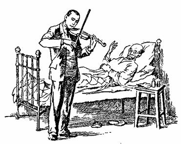В комнату на цыпочках вошел Михаил Андреевич со скрипкой и смычком в руках. Он остановился перед постелью.