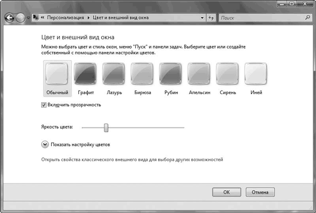 Рис. 3.2. Окно настройки цвета и внешнего вида окон при использовании стиля Windows Aero
