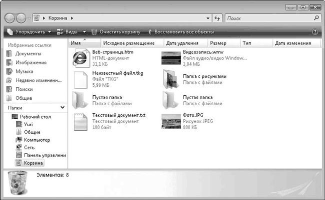 Рис. 4.24. Окно Корзина