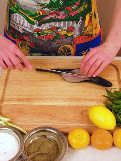 Форель очистить от чешуи и удалить внутренности через спинной надрез.
