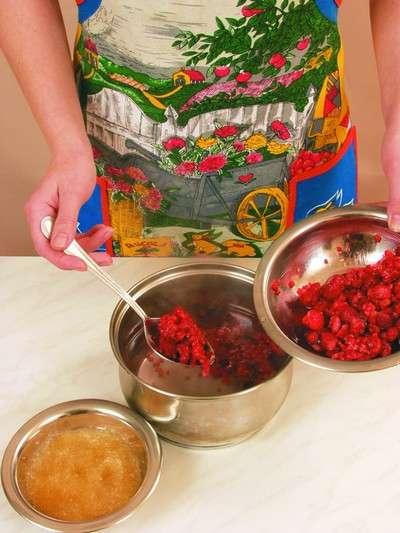 В отвар малины влить при непрерывном помешивании растворенный желатин.
