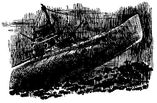Приблизительно в ста километрах от Лебединого острова на глубине восьмидесяти пяти метров лежал странной формы корабль, без мачт, но с выступом, похожим на капитанский мостик, с двумя маленькими пушками и низенькими поручнями вокруг палубы. Опытный глаз моряка или водолаза узнал бы в этом корабле подводную лодку. И хотя не диво встретить на такой глубине современный «Наутилус» [8] , но поведение этой лодки удивило бы наблюдателя. Долгое время она лежала без движения. Из прогнутого борта тоненькой струйкой всплывала вверх нефть, руль глубины был странно изогнут. А главное, в лодке не слышно было никаких признаков жизни, как будто экипаж вымер или притаился, опасаясь надводных судоразведчиков с чувствительнейшими гидрофонами.