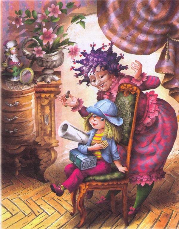 Болтая ногами, Биби сидела на стуле, на коленях у неё стояла копилка, свернутый в трубочку рисунок был зажат под мышкой, коробочку с мышью она крепко держала в руке.