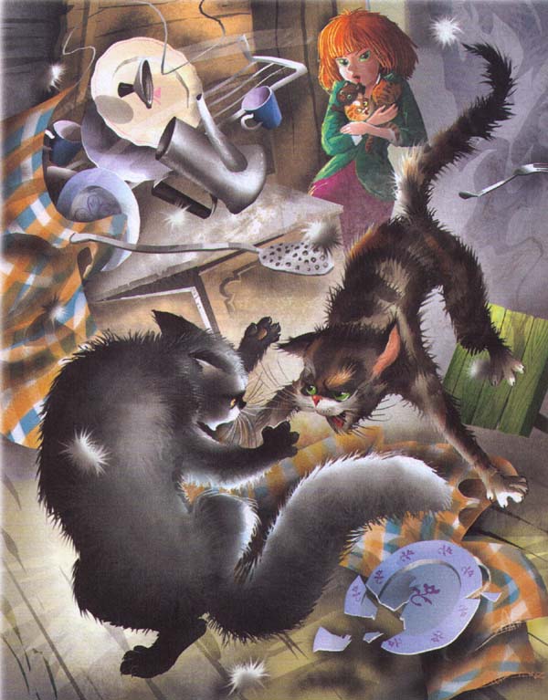 В тот момент, когда Тиббе вернулся домой, бой был в самом разгаре. Вопящий дурными голосами клубок катался по полу, в воздухе летали клочья шерсти.