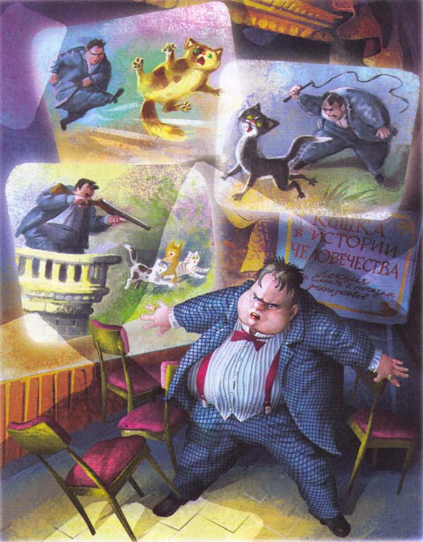 Свет в зале погас, и, когда лектор ударял в пол тростью, на экране появлялось изображение новой кошки.