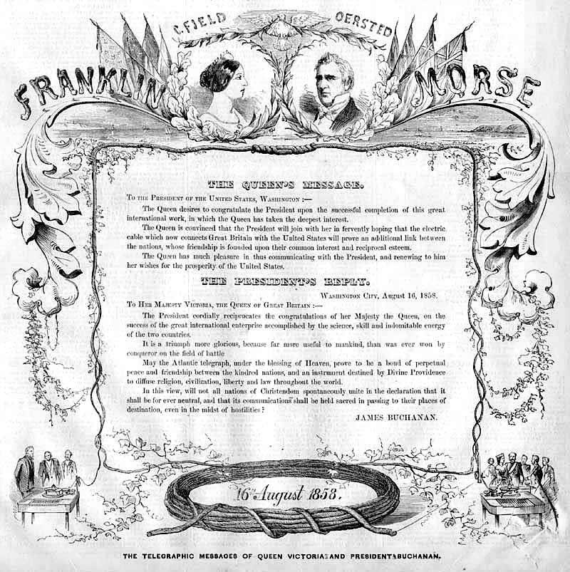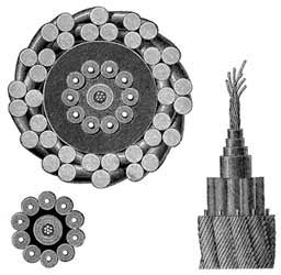 Береговые концы трансатлантического кабеля конструкции 1865 г. Поверх глубоководного кабеля наложены пеньковая подушка и усиленная броня, состоящая из 12 пучков, каждый из которых скручен из трёх стальных проволок