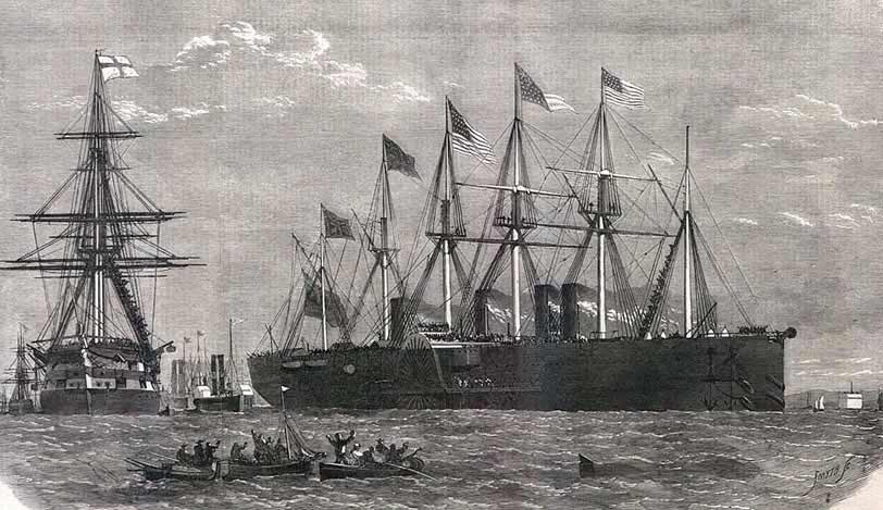 24 июня 1865 года, имея на борту 7000 тонн кабеля, 8000 тонн угля, воды и провианта для пятисот человек, "Грейт Истерн" покинул Медуэй - залив в юго-восточной части Англии, южнее устья Темзы. В то время ещё не было рефрижераторных установок, и на его борту разместили маленькую "ферму" (корову, 10 быков, 20 свиней, 120 овец) и целый птичий двор, которые должны были обеспечивать людей свежим мясом во время всего плавания.