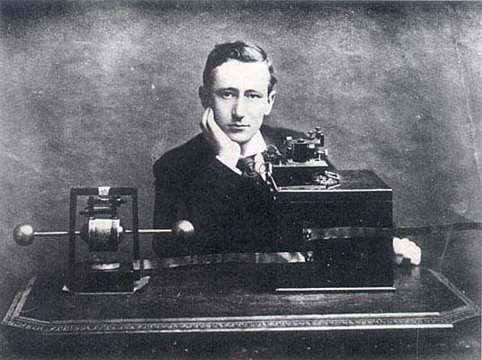 Свыше тридцати лет посвятил итальянец Гульельмо Маркони развитию радио. Ему было немногим более двадцати лет, когда он впервые послал радиосигналы на дистанцию в одну милю. Переехав в Англию из Италии, он провёл ряд замечательных опытов по радиосвязи [47] .