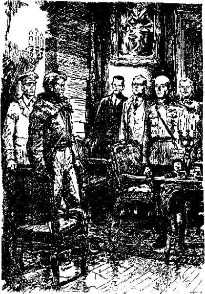 Вместе со своими советниками он вышел из комнаты. Остался только адъютант.