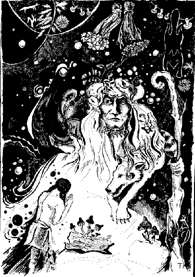 Однако хвалёный Мескви как раз меньше всего интересовал Нэнквисса. Его интересовала её рука. Поэтому на седьмую ночь Нэнквисс отправился за советом к шаману. В сумерках он спустился по тропинке со Слиав Куах, Кукушачьей горы, неся с собой подарки для великого Куви.