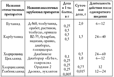 К применению сульфаниламидных препаратов есть противопоказания: тяжелый диабет взрослых, наличие ацидоза, кетоза, прекома, кома, хирургические операции, инфекции, гангрена, травма, беременность, почечная гликозурия, гипергликемия, связанная с уремией (см. табл. 3, 4).