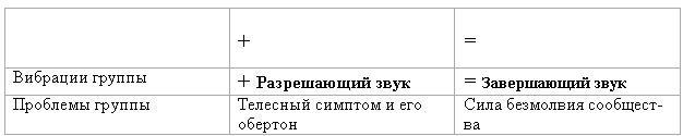 Завершающий звук. Чтобы объединить звук, устраняющий телесный симптом (ваш разрешающий звук) со звуком группы, который вы записали в начале этого упражнения, вспомните их оба, после чего издайте один звук, потом другой. Заметьте первый, затем второй, и результирующий опыт. Стремятся ли звуки следовать друг за другом? Остается ли в конце только один или другой звук? Или же появляются полностью новые песня и звук? Внимательно следите за происходящим, пока не появится завершающий звук. Когда у вас будет ваш завершающий звук, позвольте развернуться истории об этом звуке.