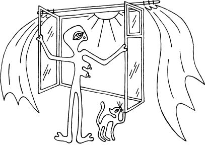 Комната с бежевыми стенами казалась самой обыкновенной. Неширокая белая кровать, застеленная полосатым одеялом; дубовый письменный стол с семью ящиками и стулом; большое потёртое кресло, обитое буровато-зеленым гобеленом; в углу узкий тёмный шкаф с расписными дверцами; пол, собранный из тёплых желтых досок. Странно в этой комнате выглядело только окно – круглое, задёрнутое занавеской в цветочек. Иногда за ним был сад, иногда – берег океана, а сейчас там, на чёрном-причёрном небе, сияла синяя Земля с рыжими пятнами материков.