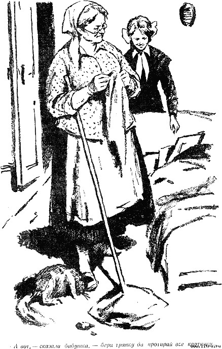 В пятницу, придя из школы, Зина застала в квартире разгром. Бабушка только что вымыла окна. Таз с грязной водой стоял среди пола. От окон к двери текли ручьи. Коврики собраны в кучу. Всё, что обычно висело на стенах – картина с избушкой на морском берегу, фотографии, календарь с левитановской осенью на папке, портреты Ленина и Пушкина, – всё лежало на столе. Бабушка щёткой, закутанной в тряпку, обметала потолок.
