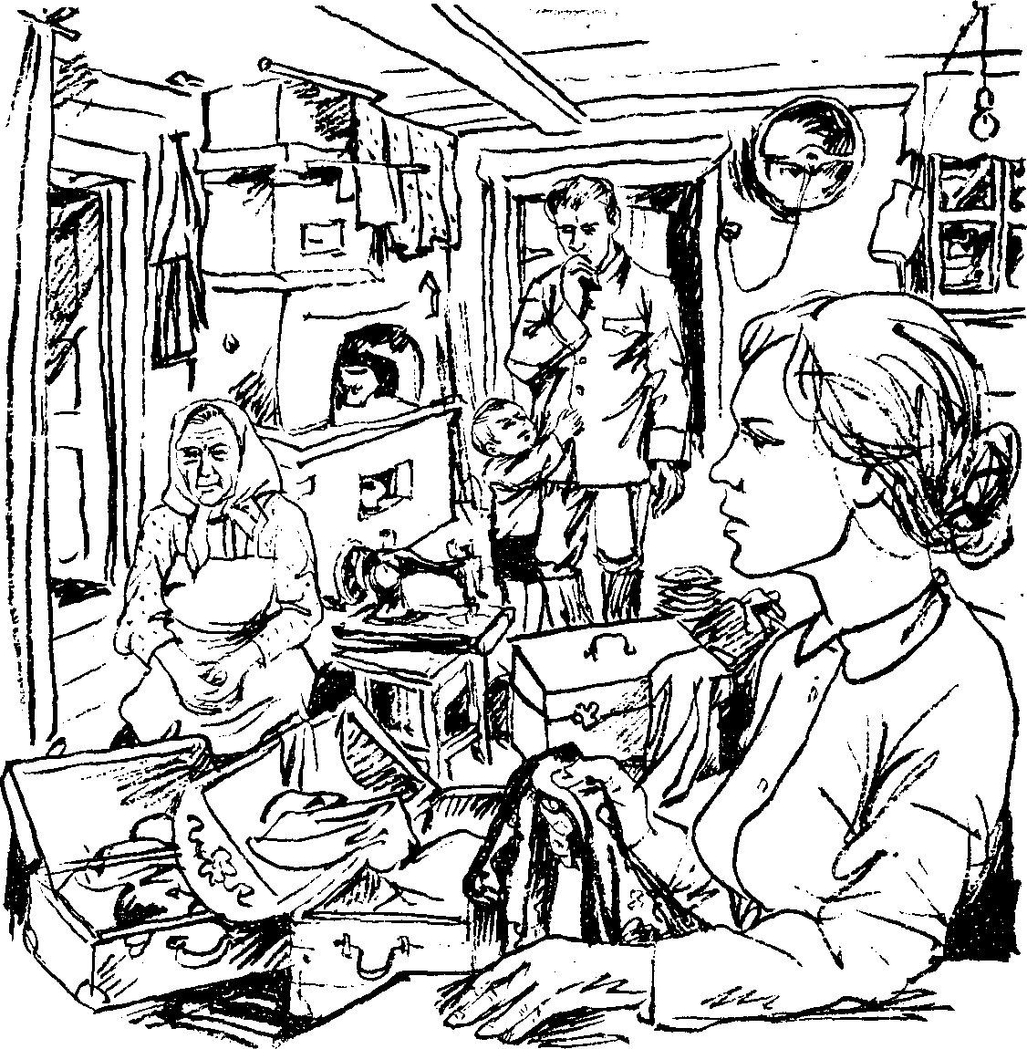 — Не хоронишь же еще, — отстранил жену уже далекий и не принадлежащий ей Трофим, и она бросилась сначала к машинке. Погладила ее, припала к сундуку. И вдруг сникла, отошла. Села на материно место в углу, у печи. Все эти скрытые для глаза, упрятанные в узлы вещи сразу стали ей ненужными. Вековечная бережливость еще приказывала в последний раз проверить все и проследить, чтобы ничто не потерялось, не разбилось. Но эта же деревенская трезвость подсказала Ульяне, что все эти костюмы, отрезы, платья, машинка — наживное. Душа зашлась в жалости к мужу. Ульяна, выросшая без отца, ценила мужа, ценила как отца своего ребенка, как мужчину в доме. Она любила Трофима, но любовь сейчас молчала. Война отнимала у нее опору, руку. По-другому смотреть в эту минуту на Трофима Ульяна, как ни старалась, не могла. И чтобы перебить это нехорошее, некрасивое, что встало между ней и мужем, она всплеснула руками и запричитала: