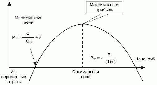 На рисунке 4.12 показан график зависимости прибыли от цены при эластичном спросе.