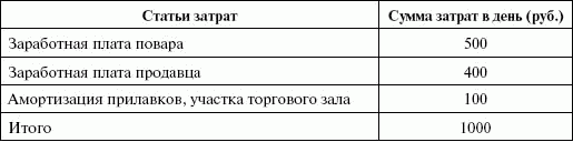 Кроме переменных еще есть постоянные затраты в расчете на день, не зависящие от объема продаж, которые приведены в табл. 4.3