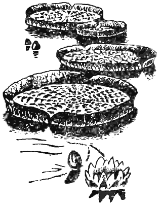 Индейцы по этим листьям, как по естественным мостам, свободно бегают через болото. Именно бегают, потому что небольшой человек стоять на листе может только строго по центру, чуть сдвинется к краю — лист уже тонет.