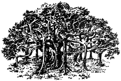 В тени баньяна может без тесноты разместиться целая деревня в сто хижин. Рассказывают, что ещё Александр Македонский дивился на баньян, под ветвями которого разбили лагерь 5 тысяч его воинов. На островке Нербудде один баньян покрыл "густым лесом весь остров"!